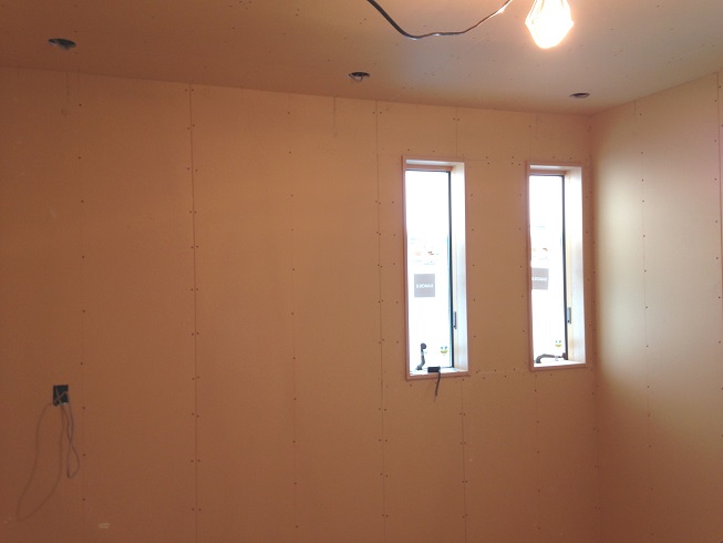 現在、松江展示場はオープンに向けて順調に工事を進めています。上の写真のように、内装も出来上がってきています。